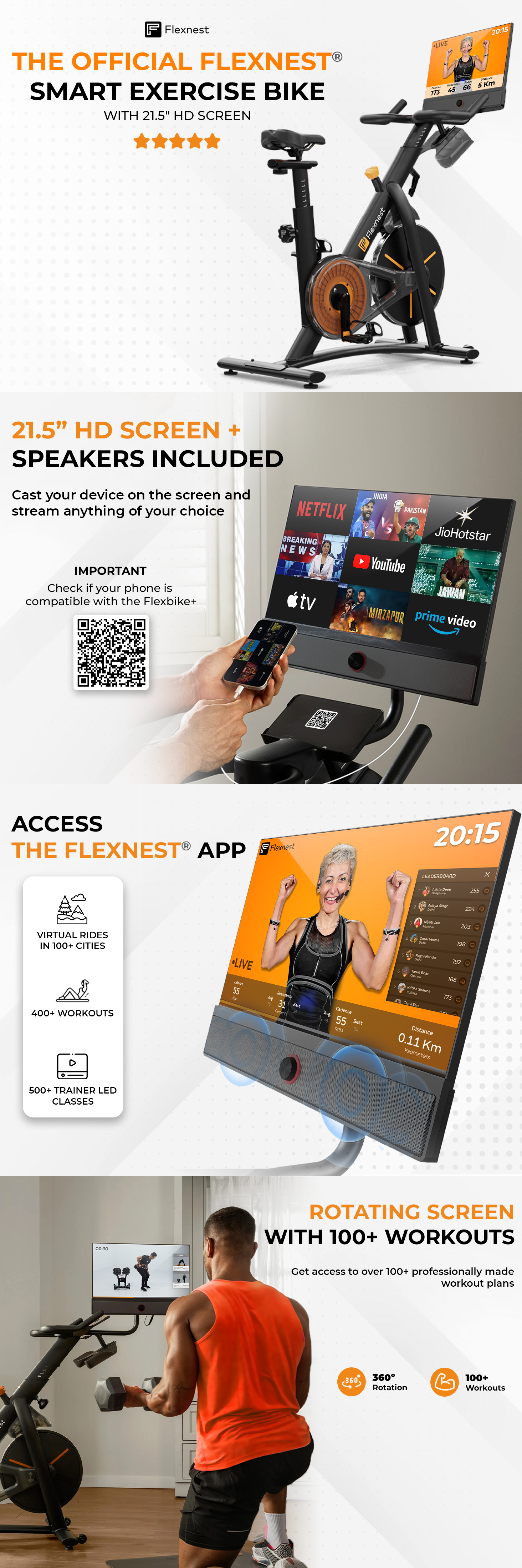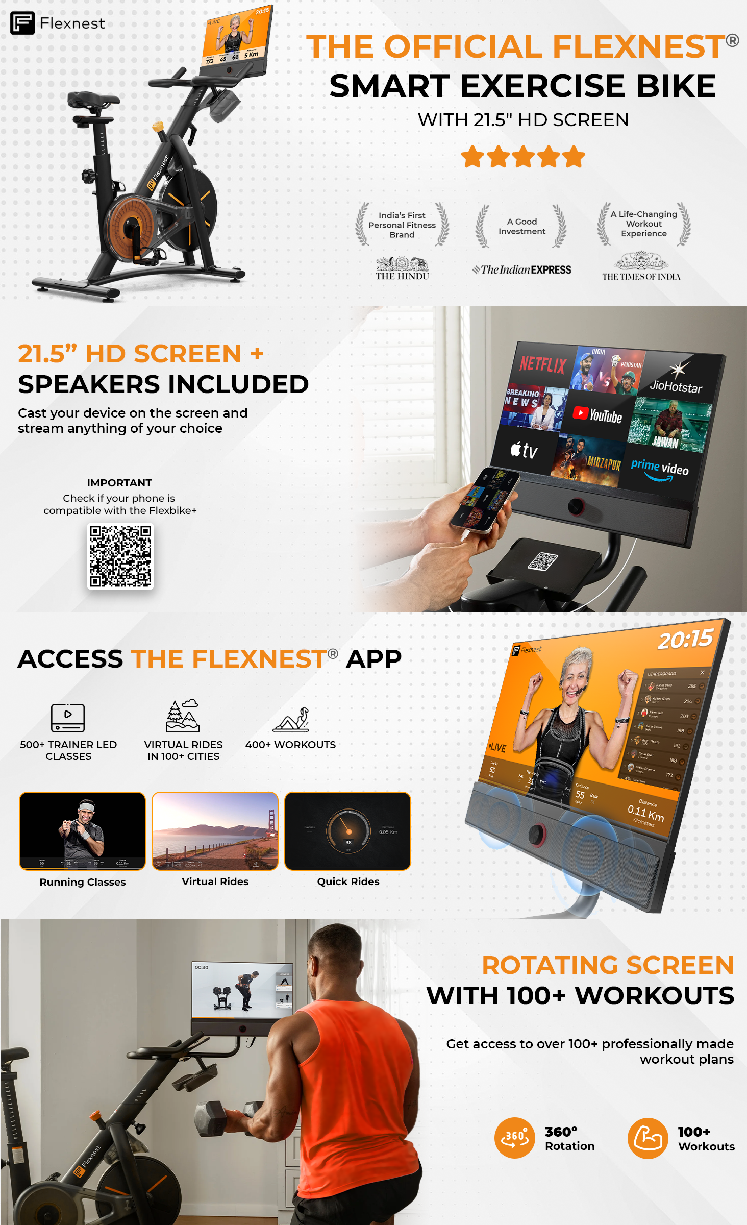 Experience India's #1 Smart Bike, complete with 1000+ Trainer-led workouts and 100+ virtual rides. Experience personalised workouts direct from your home! Free 1-month Flexnest Membership.