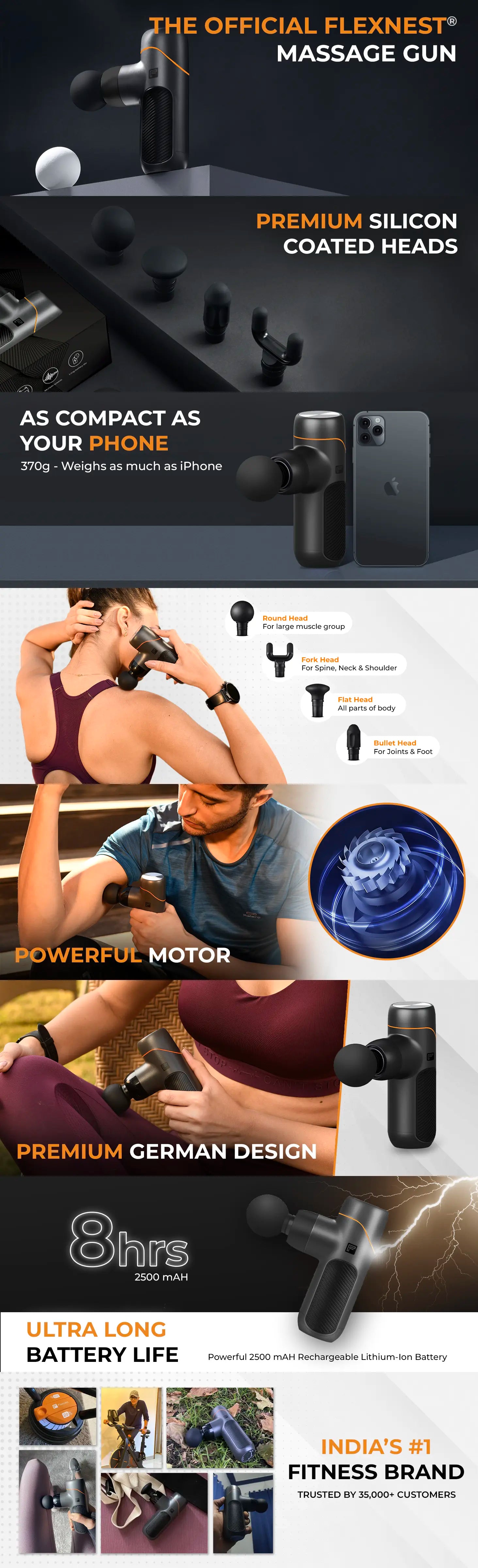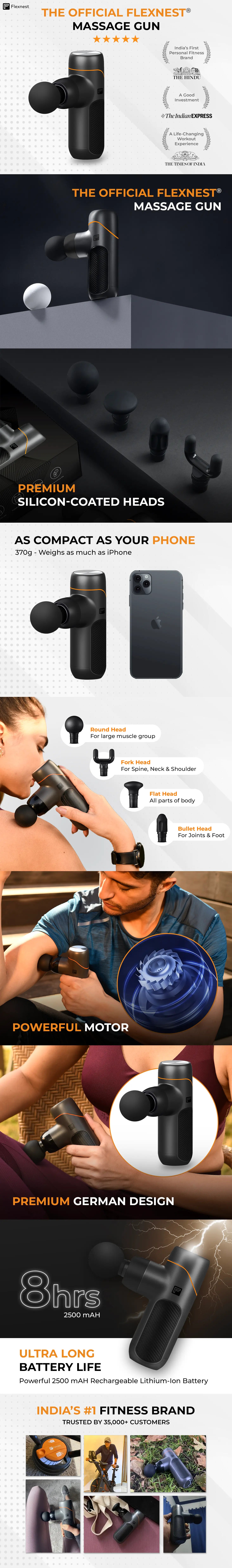 The Flexnest Massage Gun is the Ultimate Massage Gun for your Muscle Recovery. Its quiet, powerful, lightweight, and built with the highest quality materials.