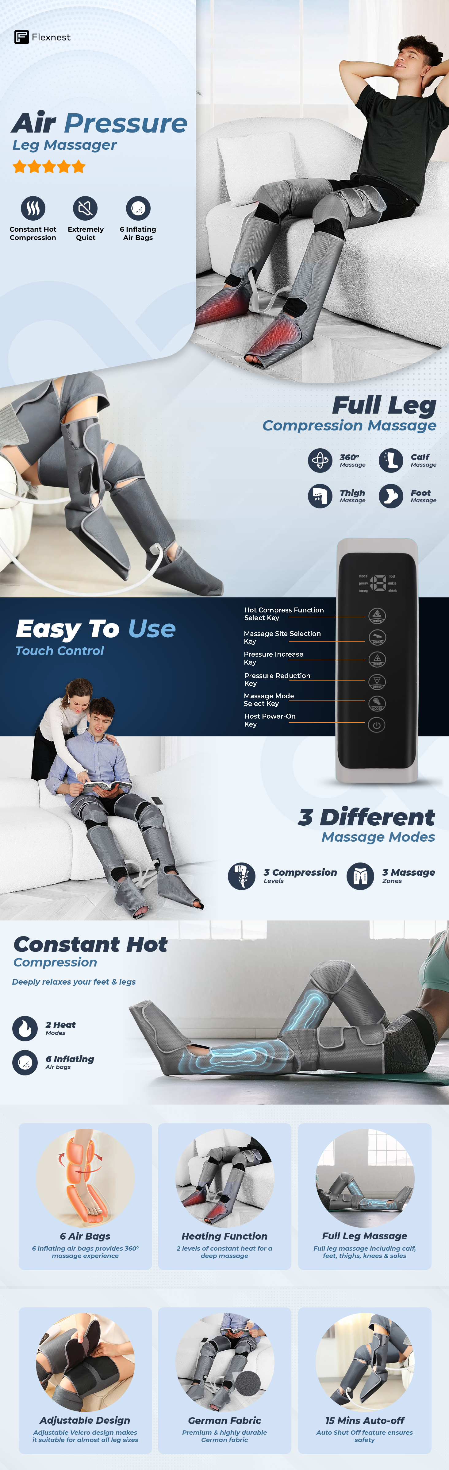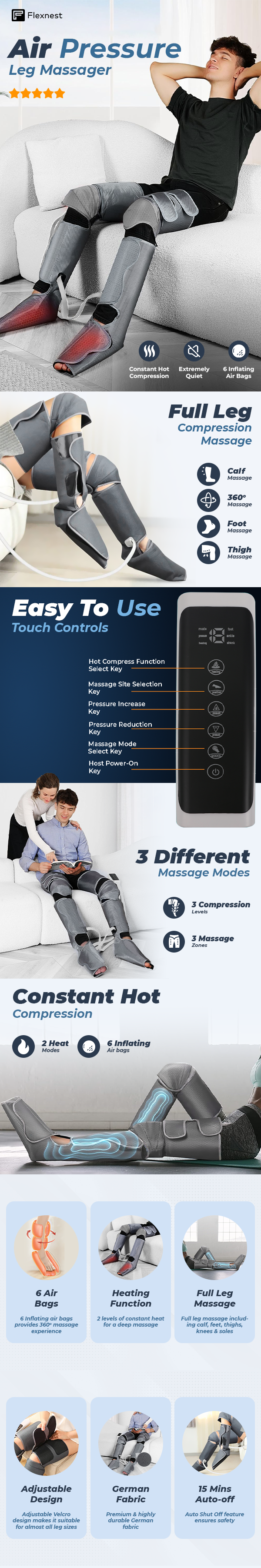- Model: Flexnest Air Compression Leg Massagerq