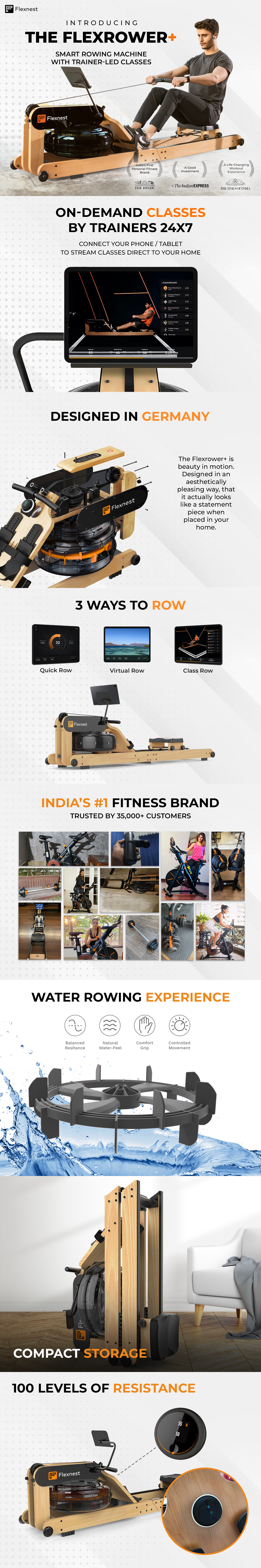 The Flexrower+ is the Ultimate, Smart Rower of the future. This smart, Bluetooth enabled magnetic rower is designed to help you achieve your fitness goals from the comfort of your own home.