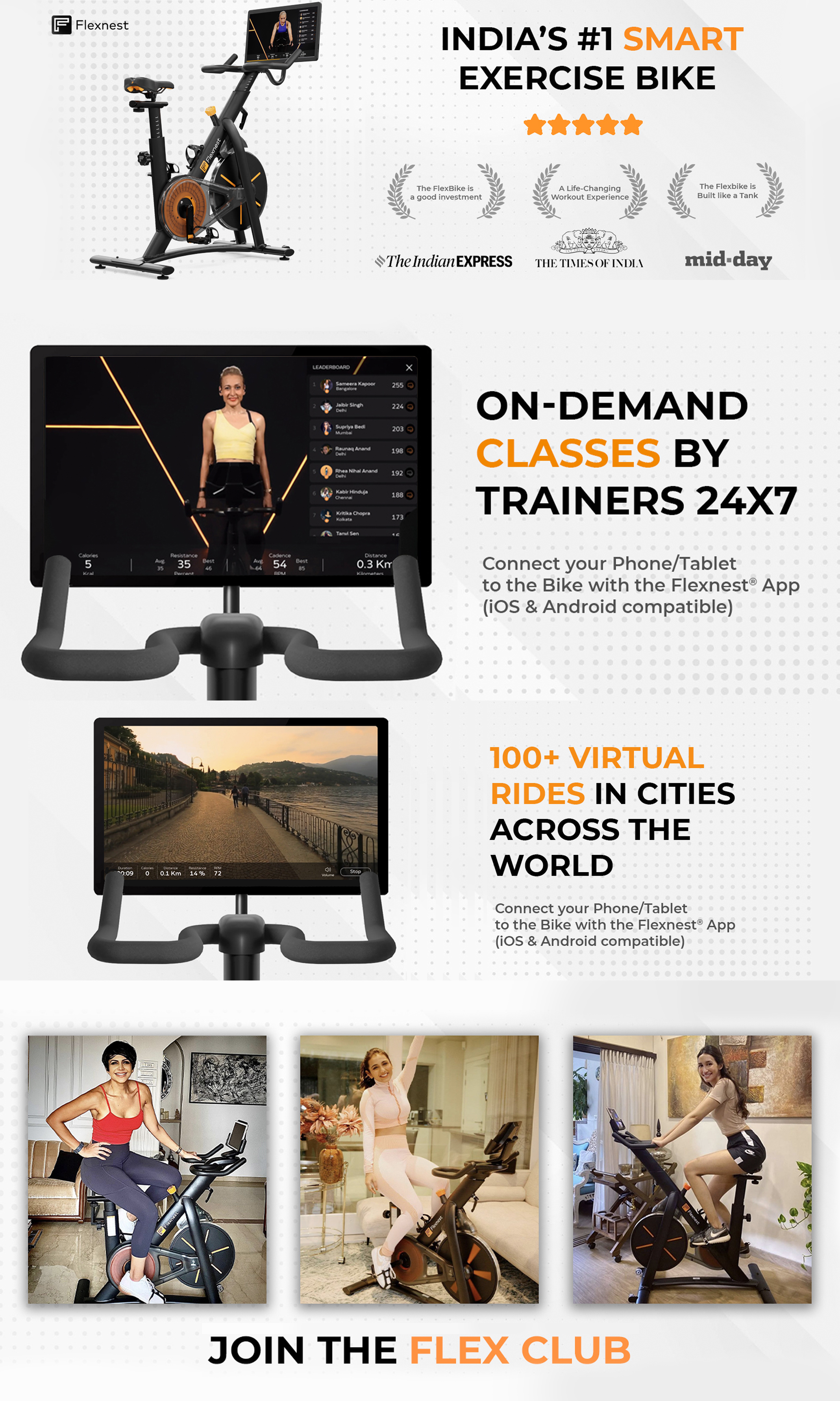 Experience India's #1 Smart Bike, complete with 1000+ Trainer-led workouts and 100+ virtual rides. Experience personalised workouts direct from your home! Free 1-month Flexnest Membership.