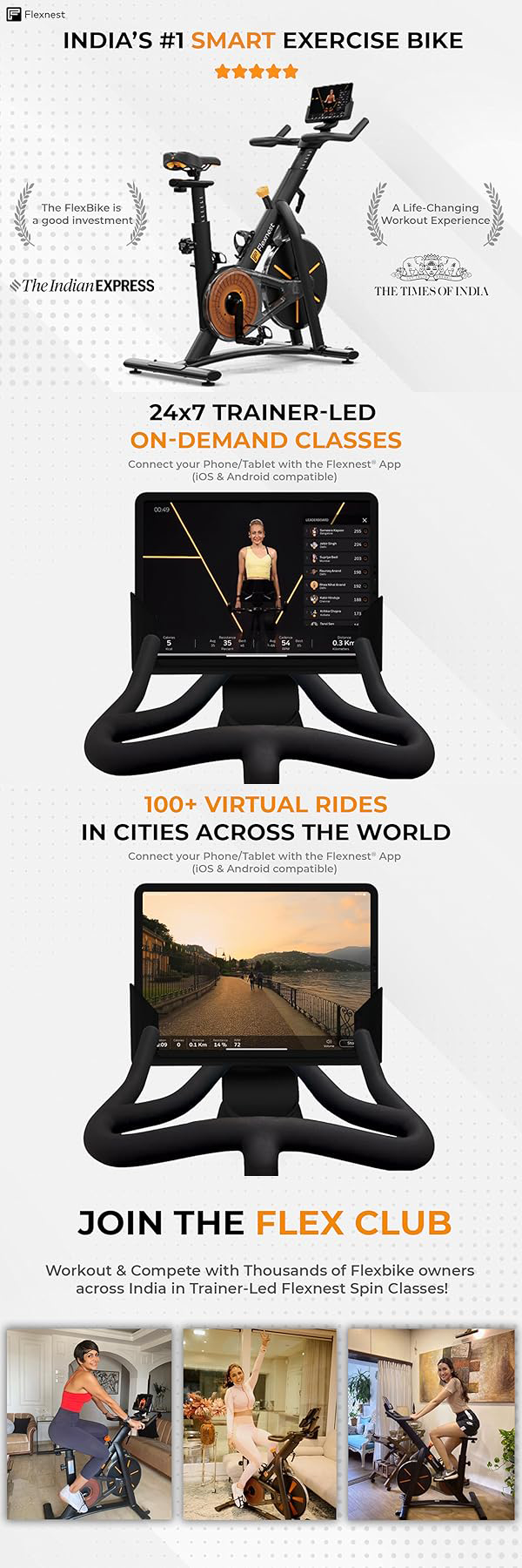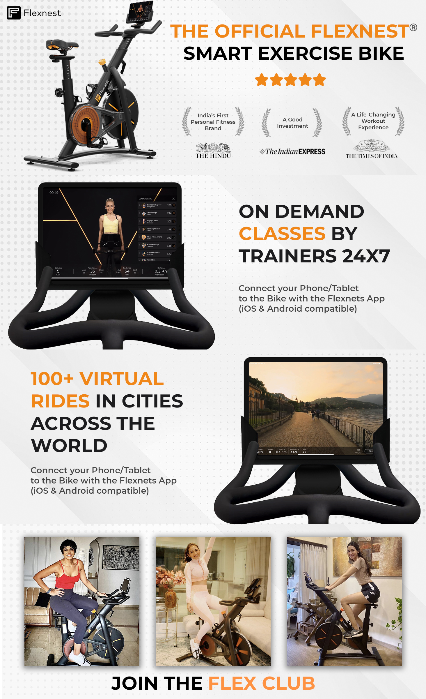 Experience India's #1 Smart Bike, complete with 1000+ Trainer-led workouts and 100+ virtual rides. Experience personalised workouts direct from your home! Free 1-month Flexnest Membership.