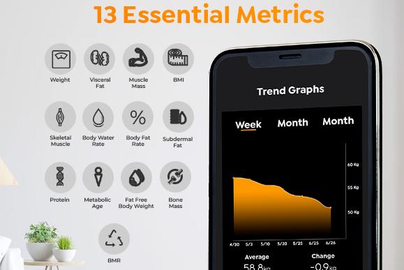 weighing scale that helps you measure and track over 13 essential body metrics.